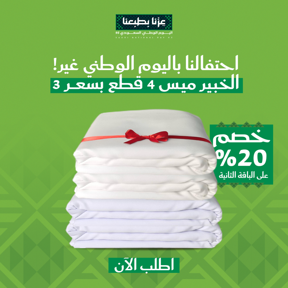 - استثمار مثالي حيث تحصل على قطعة رابعة مجانًا، كما تأتي كل قطعة بمقاس 3.5 متر عرضين تكفي لتفصيل ثوب كامل لشخص بالغ.